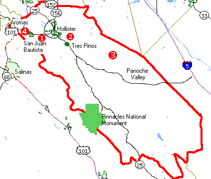 Protected Lands The San Benito Agricultural Land Trust currently protects 5,454 acres of working ranches and farms and is actively pursuing additional lands. 1. San Juan Valley: This 65 acre parcel is the first easement that protects San Juan Valley, perhaps the richest agricultural resource in the county. Protected in 1997, this land produces a bounty of row crops each year contributing to the value and beauty of San Juan Valley. 2. Tres Pinos: Some of San Benito's best grazing land is protected by this 1,694 parcel. Protected in 1997, this preserve contains gently rolling hills which provides excellent livestock gazing. This preserve also helps protect the vista of the hills east of Hollister for future generations while protecting the region's watershed. 3. Panoche: This remote, oak-studded ranch protects grassland, oak woodland, small streams and springs. Protected in 2001, this working ranch consists of 3,173 acres of high vistas and pristine natural areas. 4. San Juan Foothills: Our most recent addition and the first acquisition by the land trust. Donated to the land trust in 2004, this property hosts a 522 acre working cattle ranch. This property also provides an open space buffer around the community of Rancho Larios and is the headwaters for the Elkhorn Slough. |